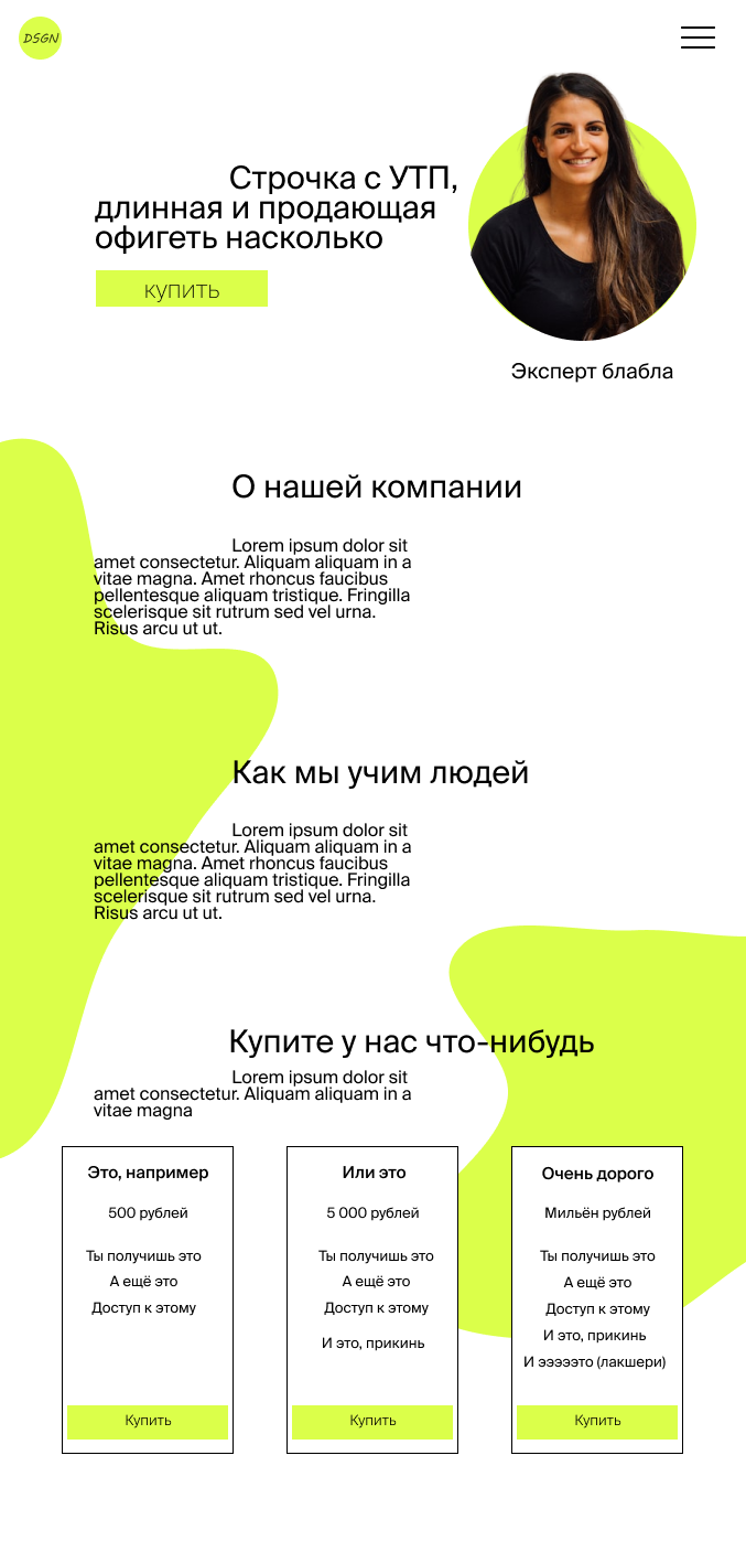 Лендинг с уникальным дизайном. Подойдет для продажи конкретного продукта — например, онлайн-курса